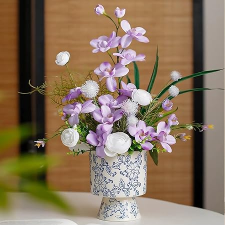 Infuse your space with timeless oriental charm through this blue and white ceramic planter featuring an elevated pedestal design and intricate hand-painted floral patterns. With its graceful New Chinese-style silhouette, this planter blends traditional art with modern aesthetics, making it a refined addition to any living area.